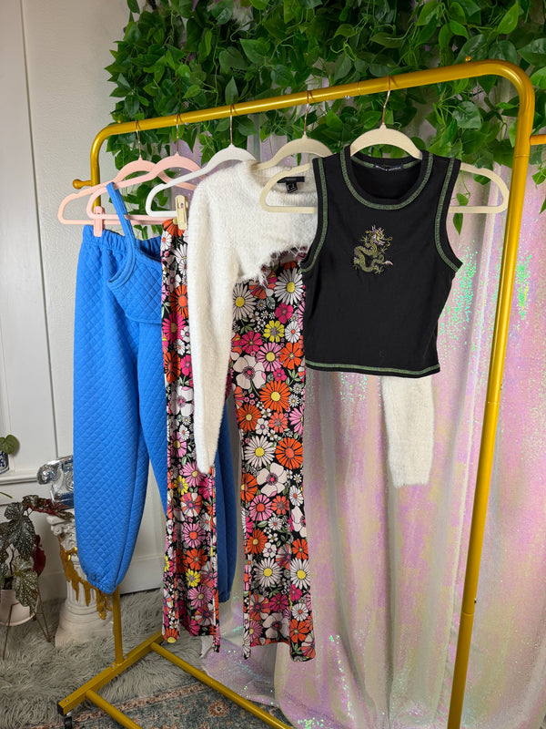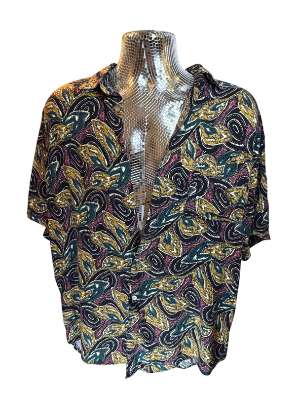 ๐ค๐ฆ๐ด๐บ aloha neutral drift comfy beach bum surfer hang loose brown sweatshirt, trippy cream, white, and brown checkered button down t-shirt, cream corduroy elastic embroidered shorts (factory tagged: L & XL