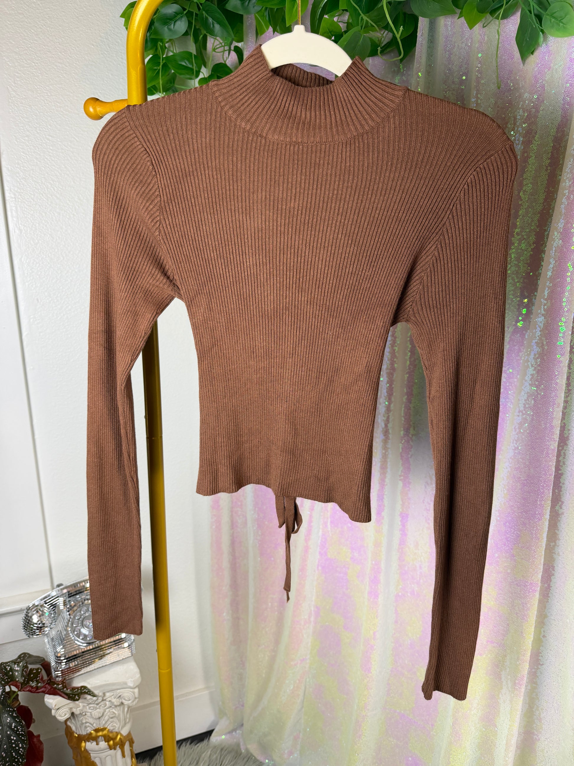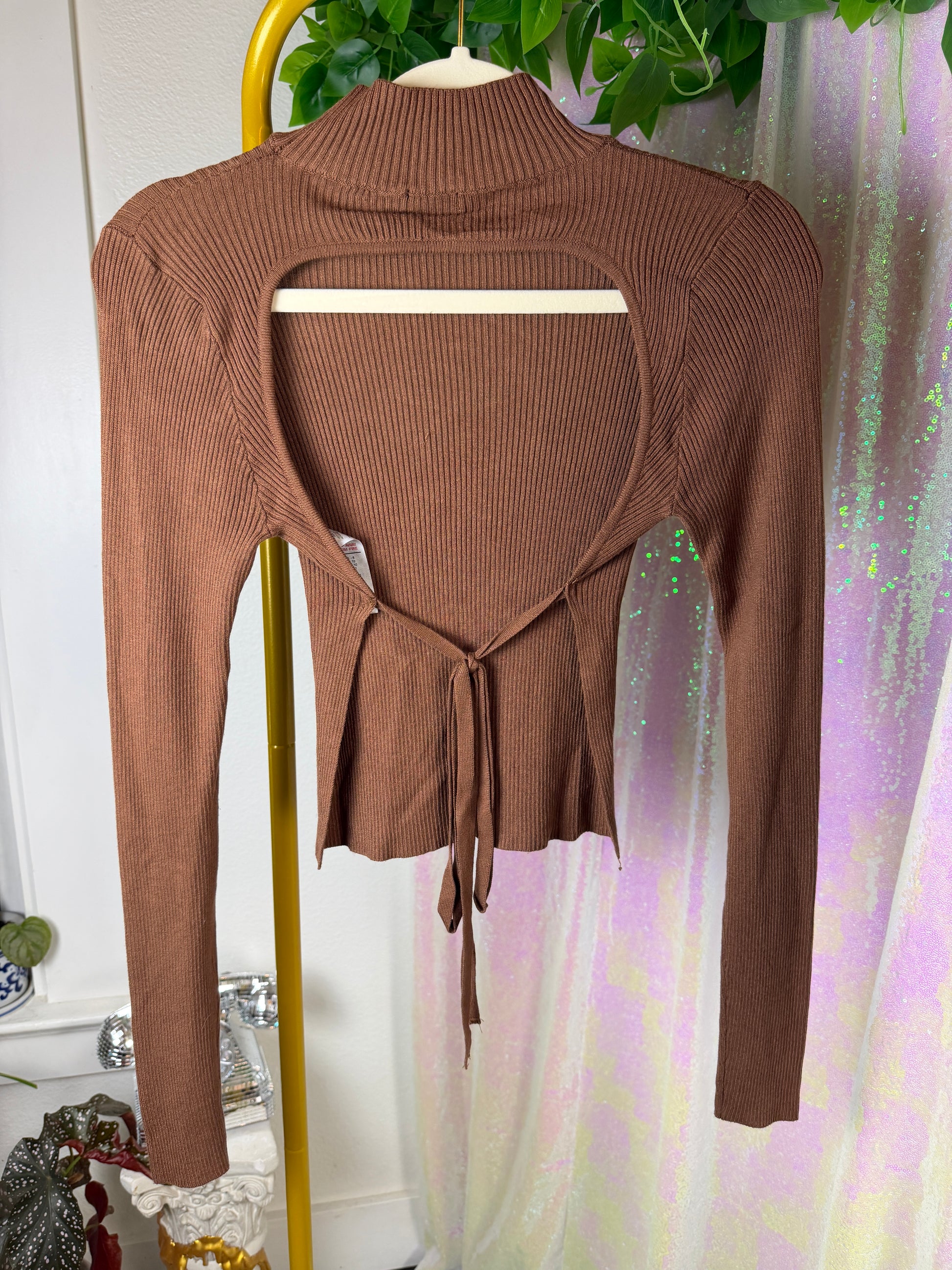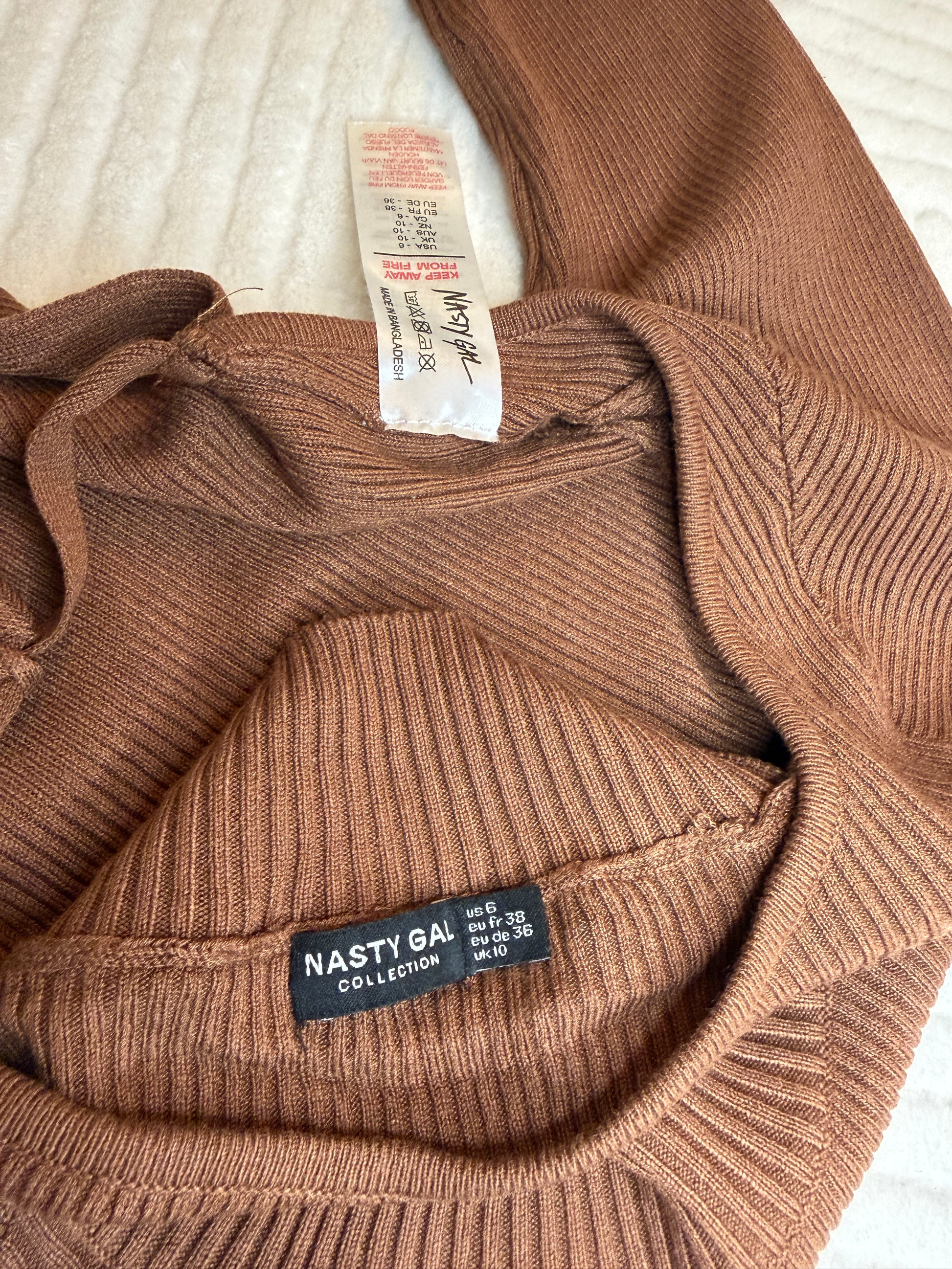 Nasty Gal ribbed brown mock-neck top (factory tagged: US 6)