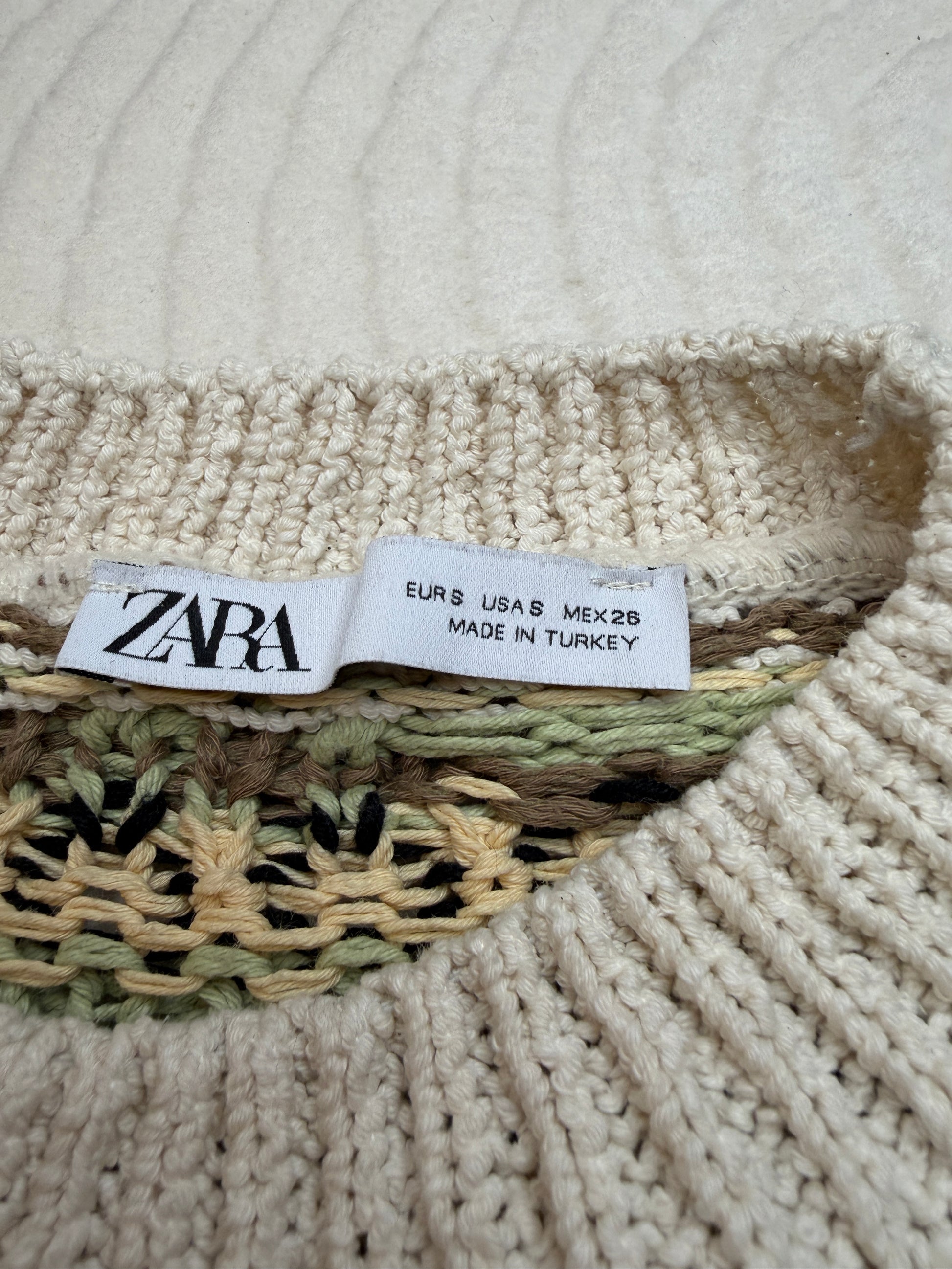 Zara knit ruffle-sleeve patterned top (factory tagged: S)