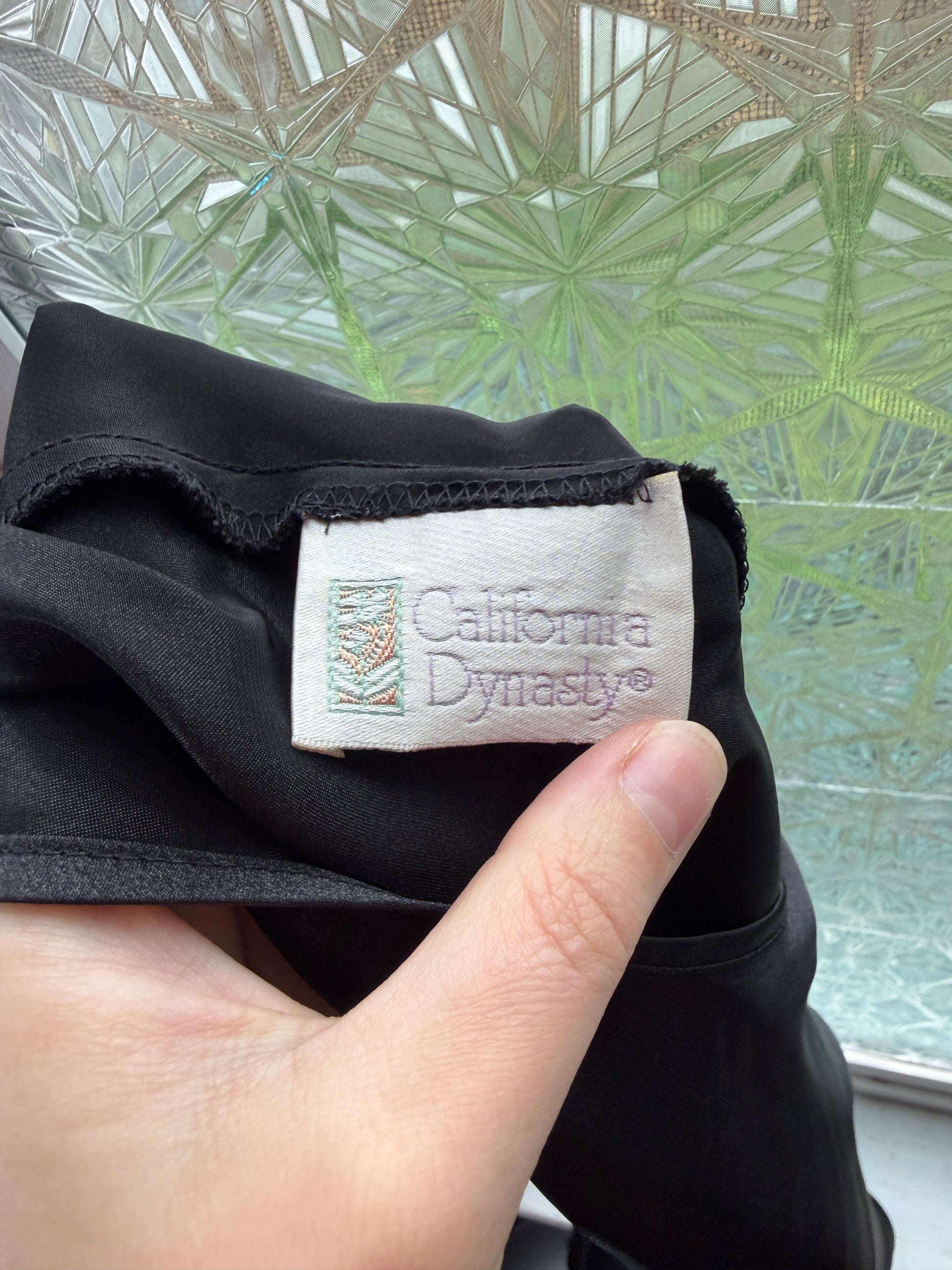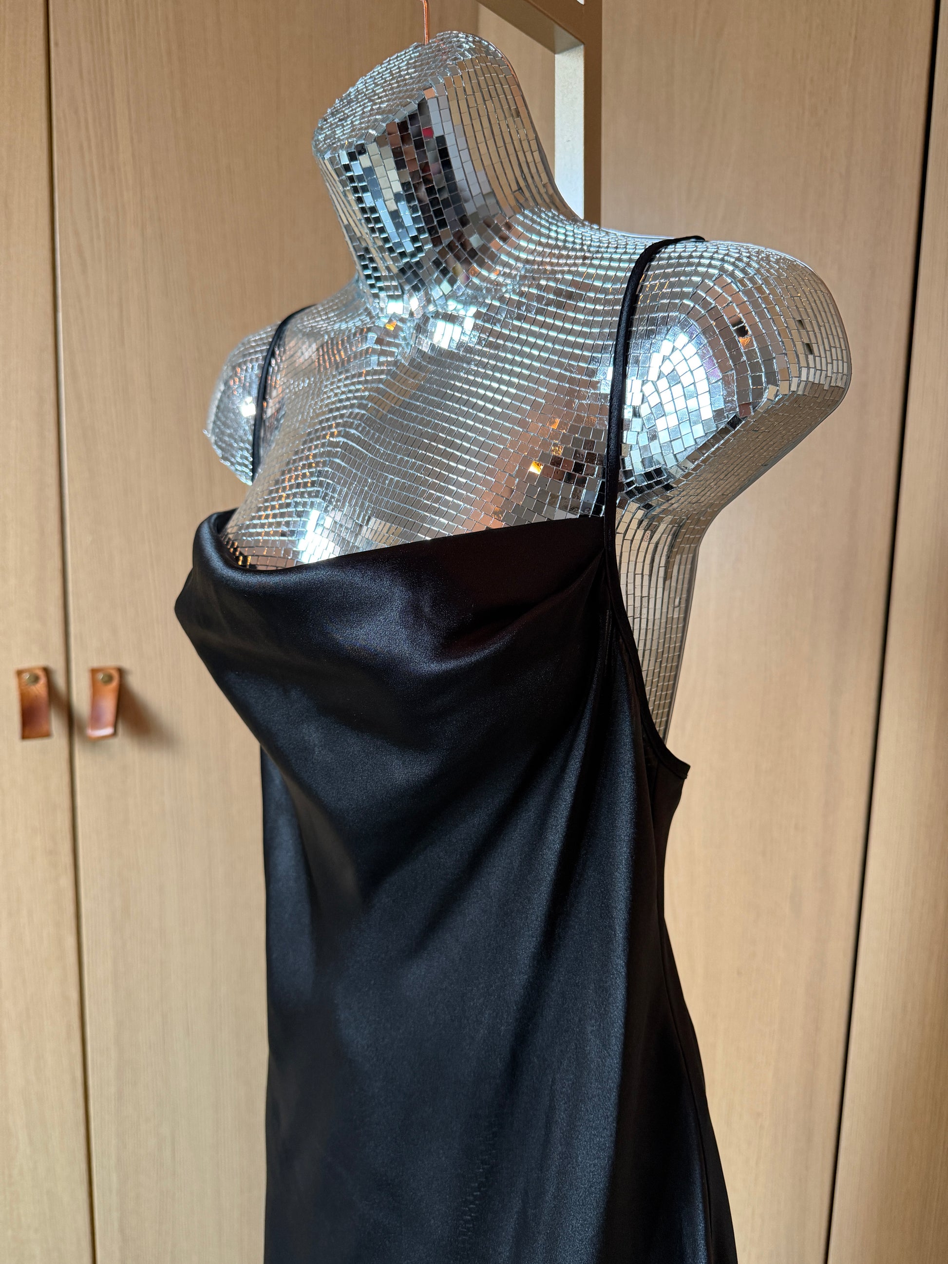 California Dynasty (S) 🌌🕶️🖤📞 vintage 90's to 2000's y2k seductress of the night gown black widow cowl neck slip satin silky dress, black (factory tag: S)