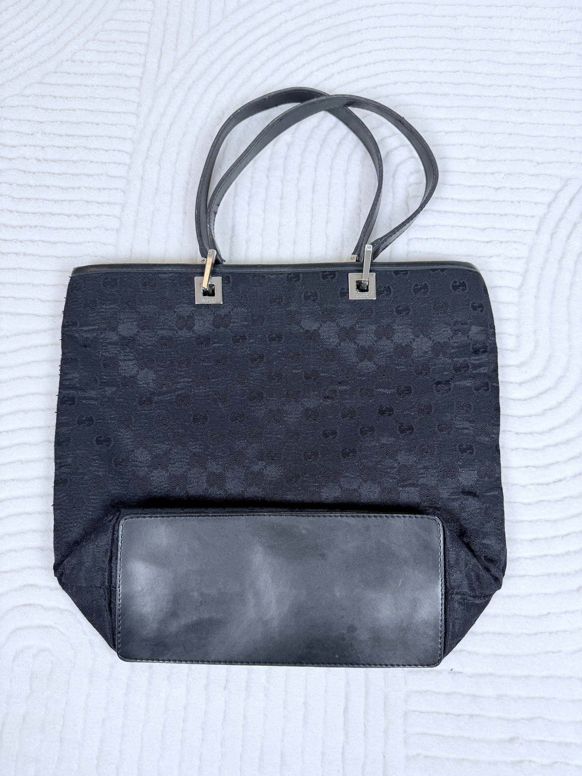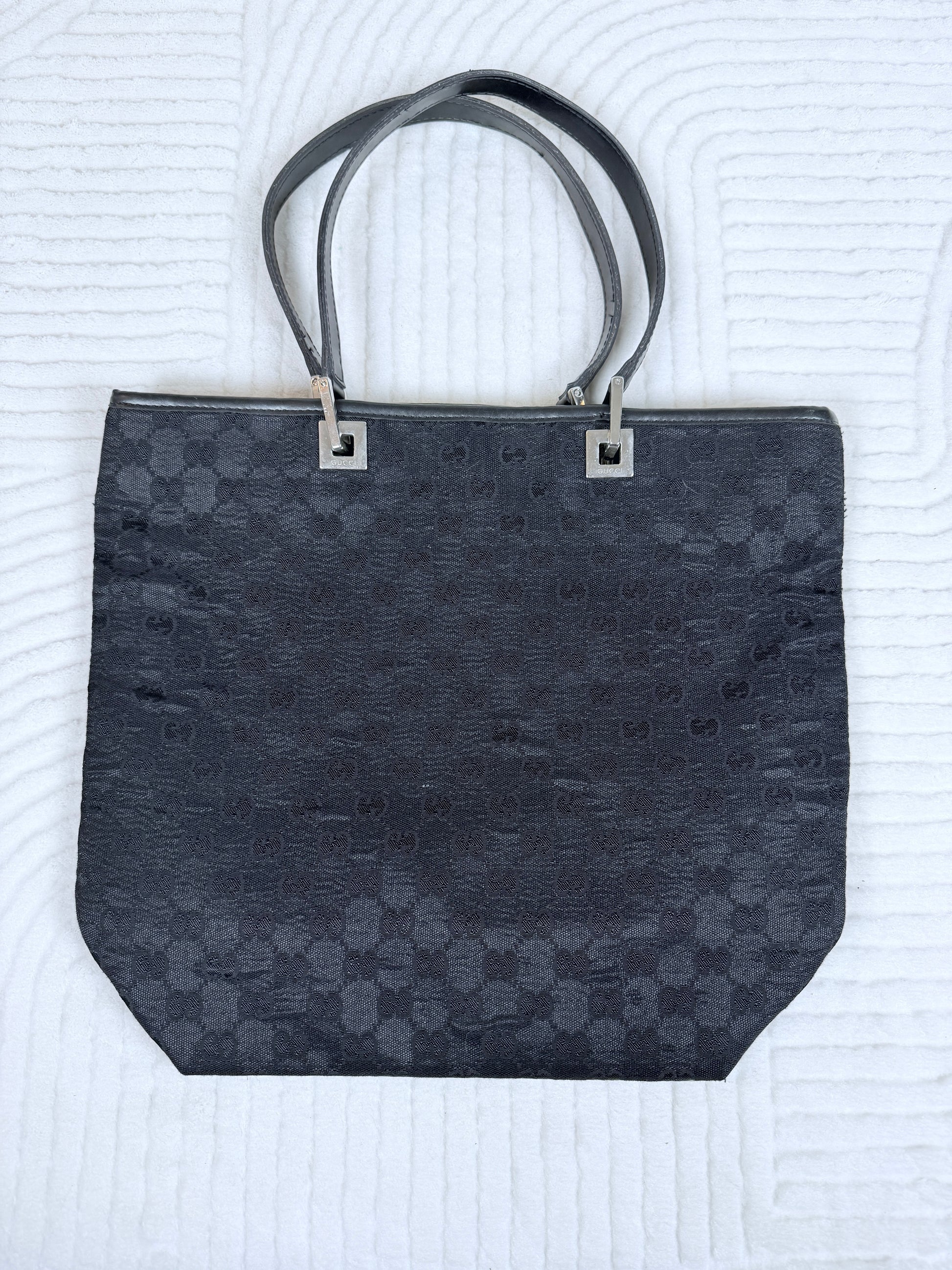 A sleek early-2000s Gucci-inspired tote with tonal GG-style jacquard, silver hardware, and a clean structured silhouette that feels very โ€œmysterious businesswoman slipping into a black car at dusk.โ€ Lightweight, roomy, and perfect for anyone who wants the luxe vibe without screaming for attention.