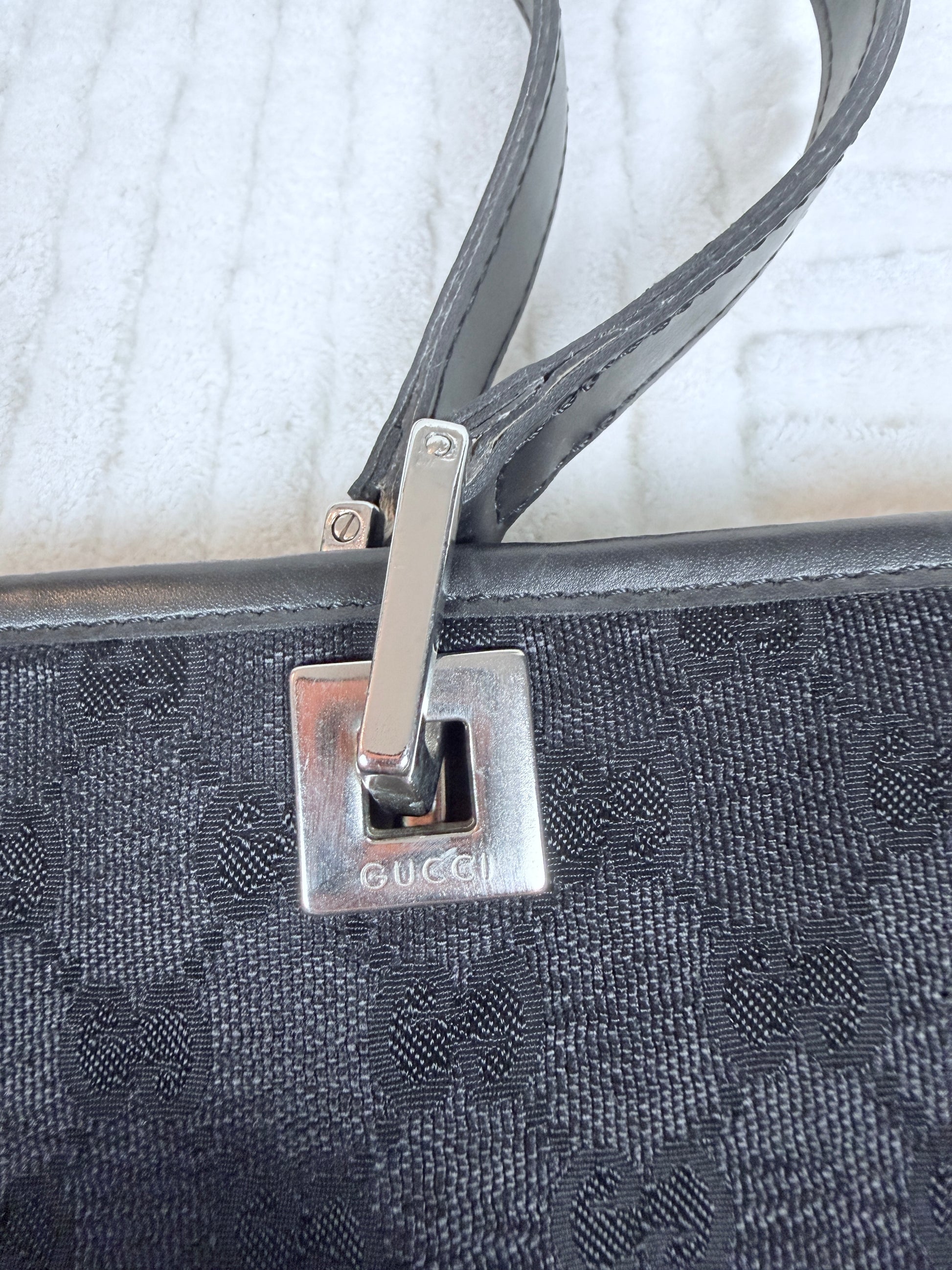 DOUPE Gucci Tote (n/a) ๐Ÿ–ค๐Ÿ‘œ๐ŸŒ‘๐Ÿ•ถ๏ธ business siren sexy sleek work black bag with silver hardware and leather accents