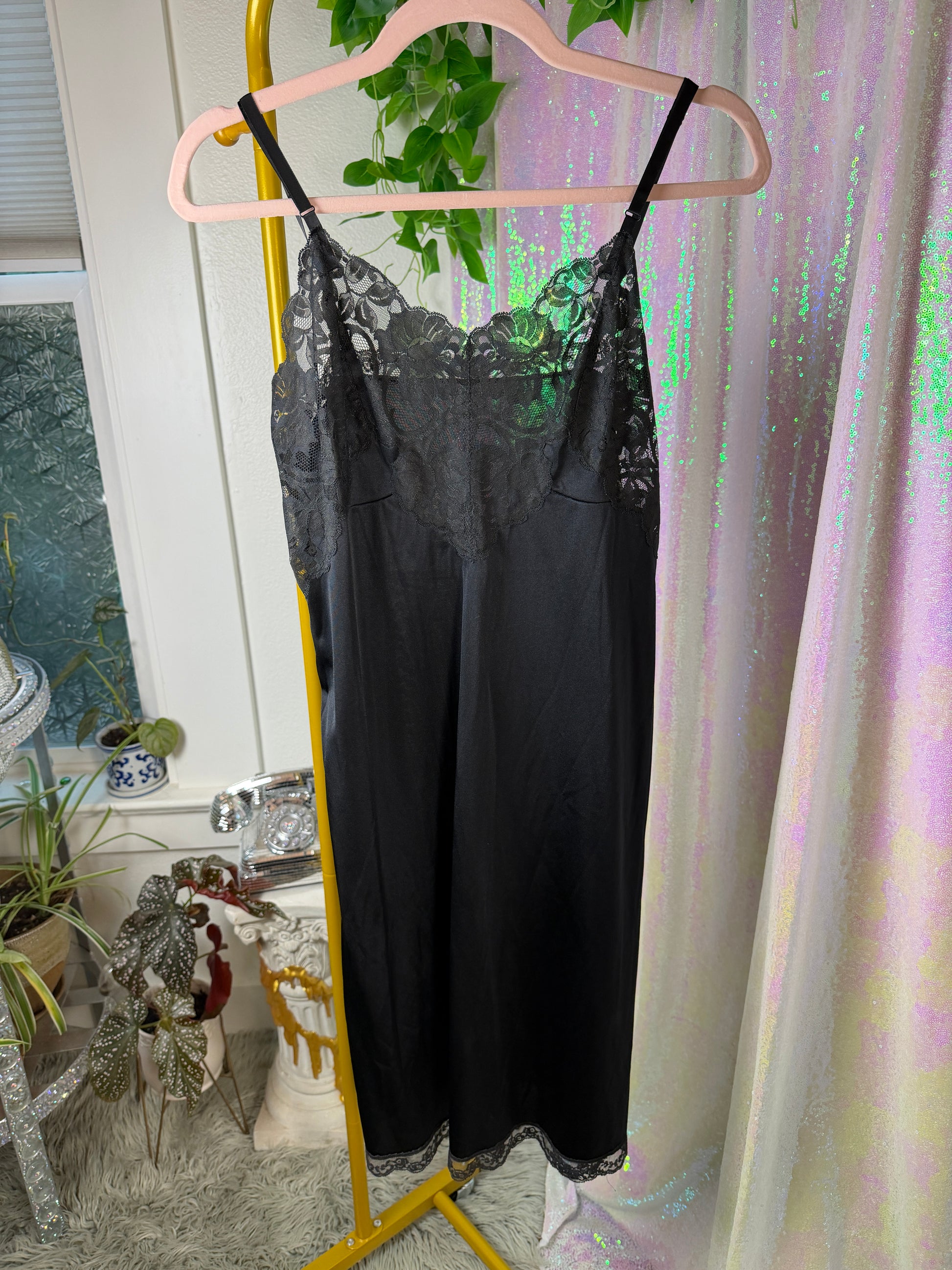 JCPenney black lace-trim slip dress (factory tagged: M)