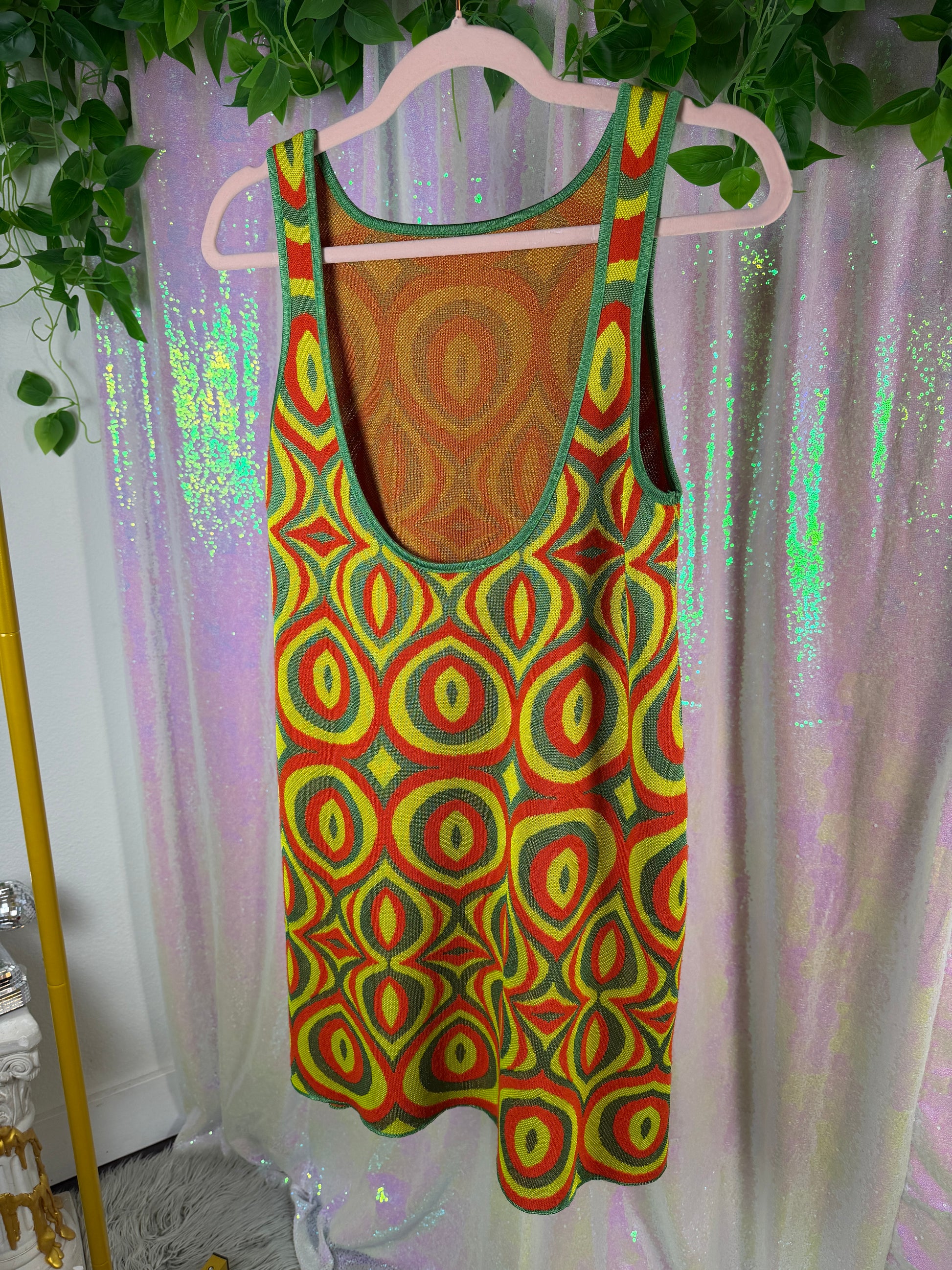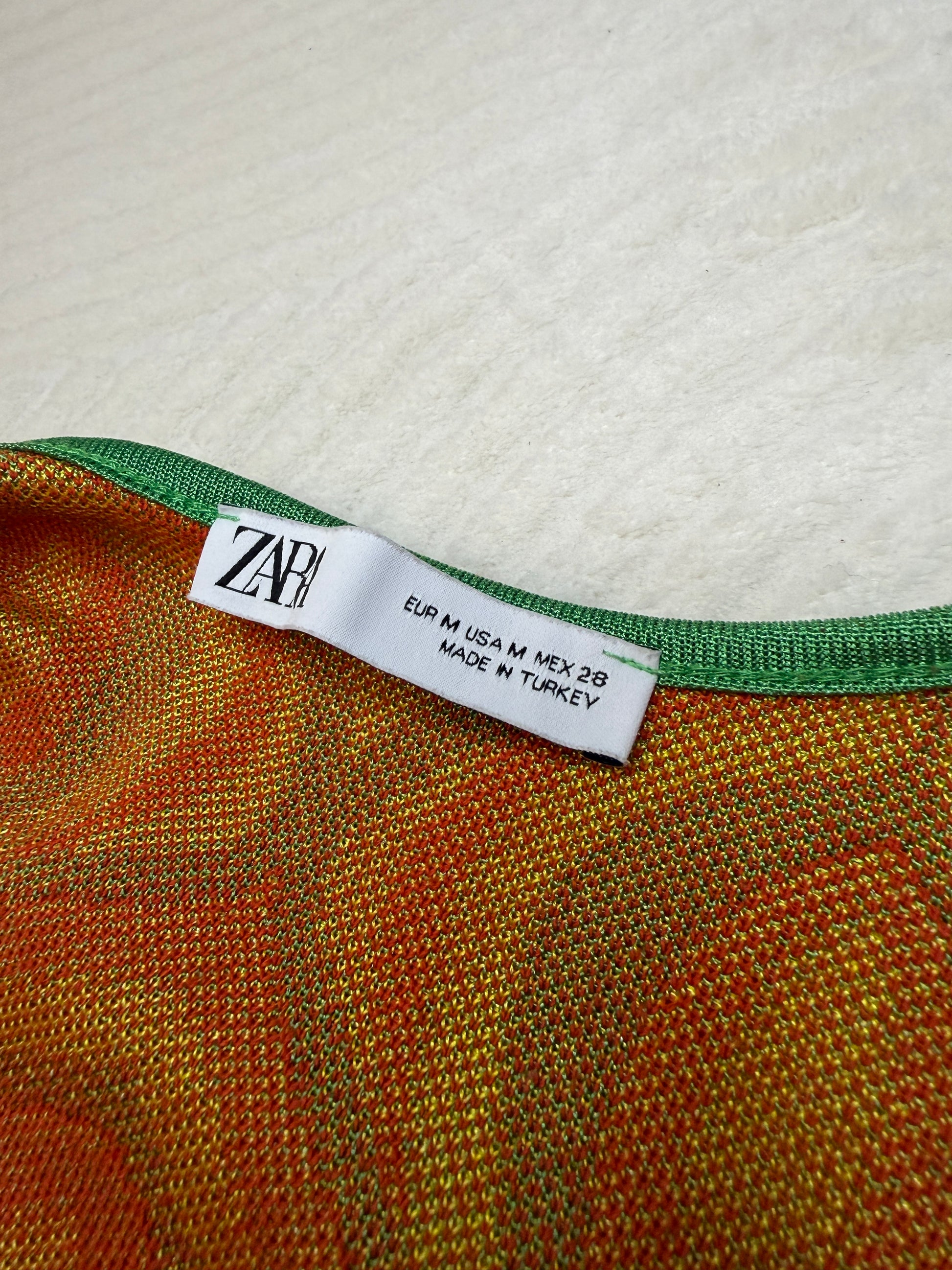 Zara citrus-psychedelic knit mini dress (factory tagged: M)