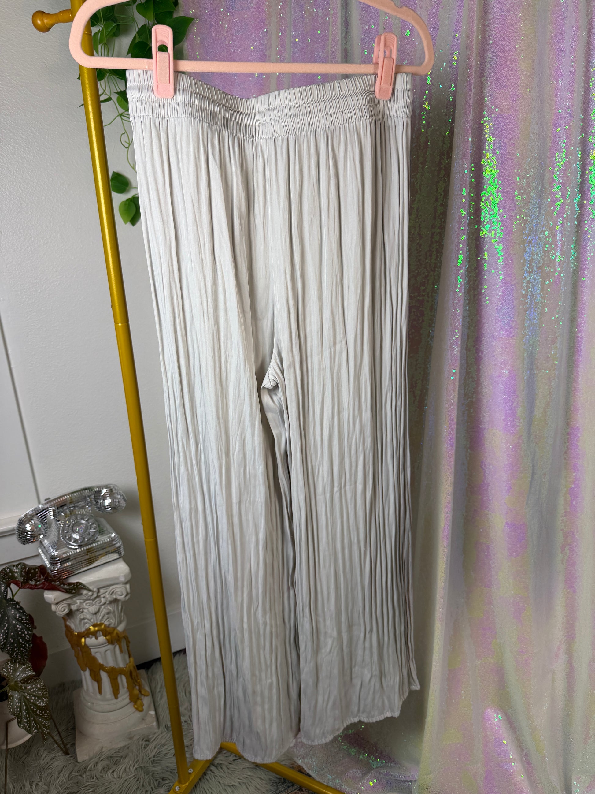 RACHEL ZOE silver-mist pleated wide-leg pants (factory tagged: M)
