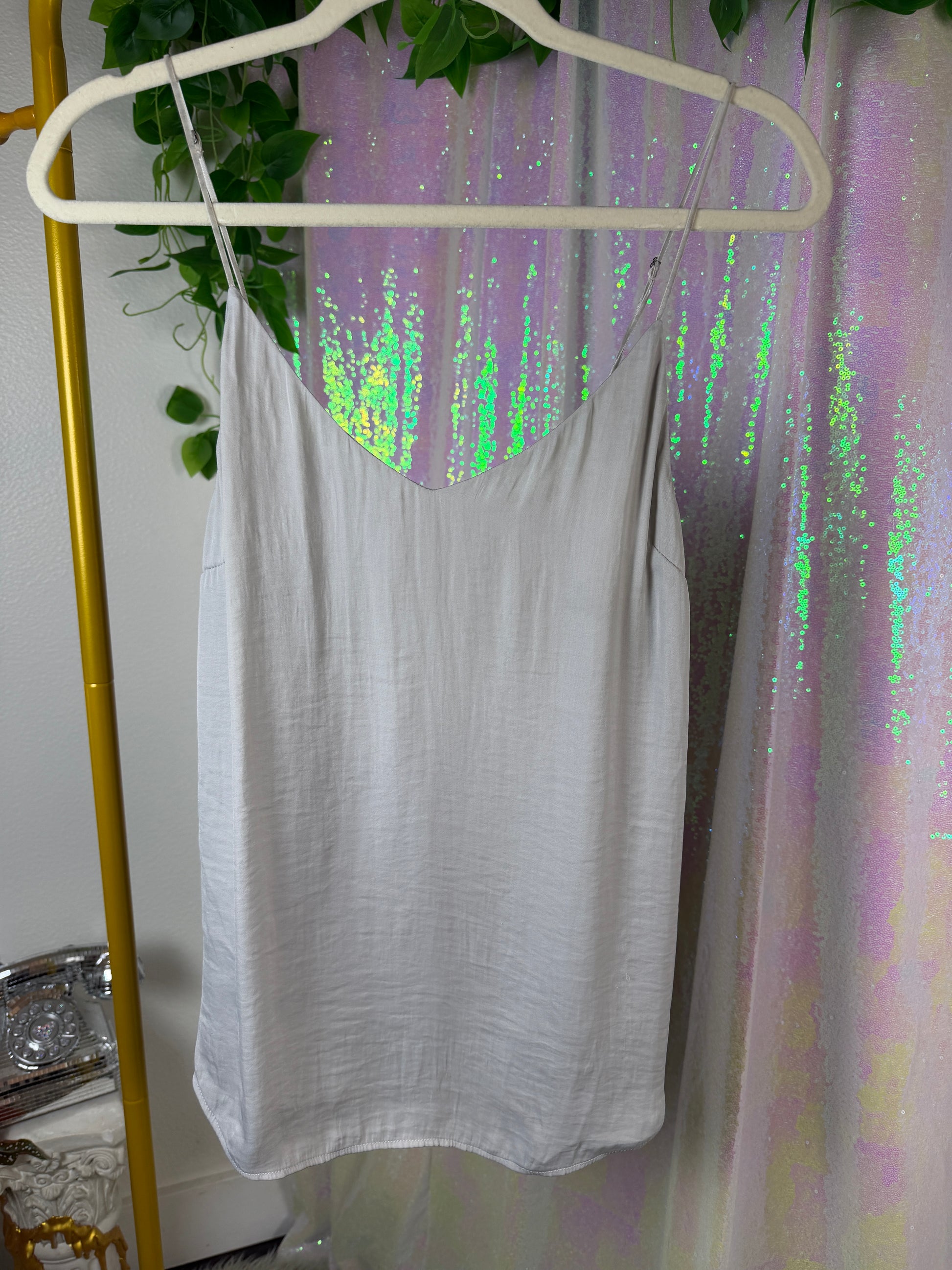 Silence + Noise soft-grey silk cami tank (factory tagged: L)