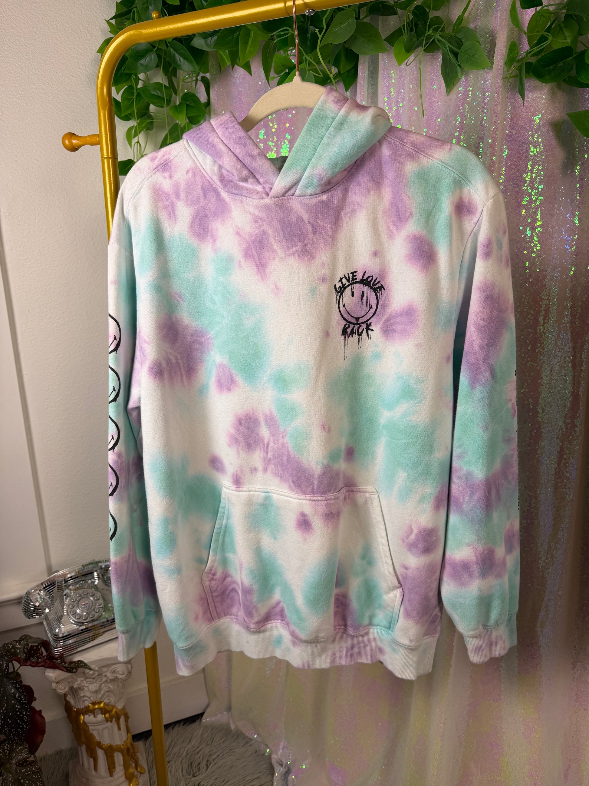 SMILEY x H&M mint-lavender tie-dye hoodie (factory tagged: S)
