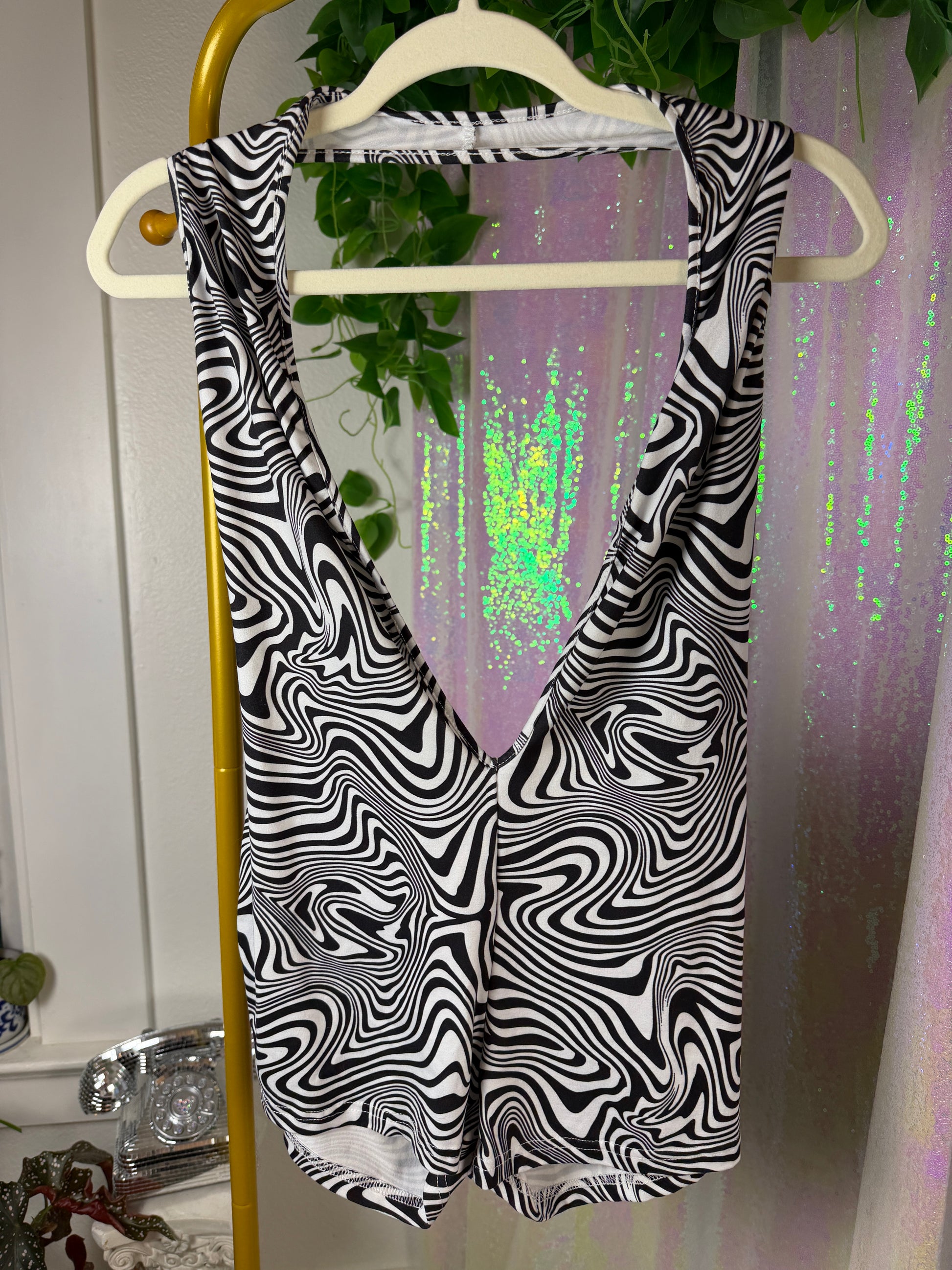 SHEIN black/white swirl bodysuit (factory tagged: M)